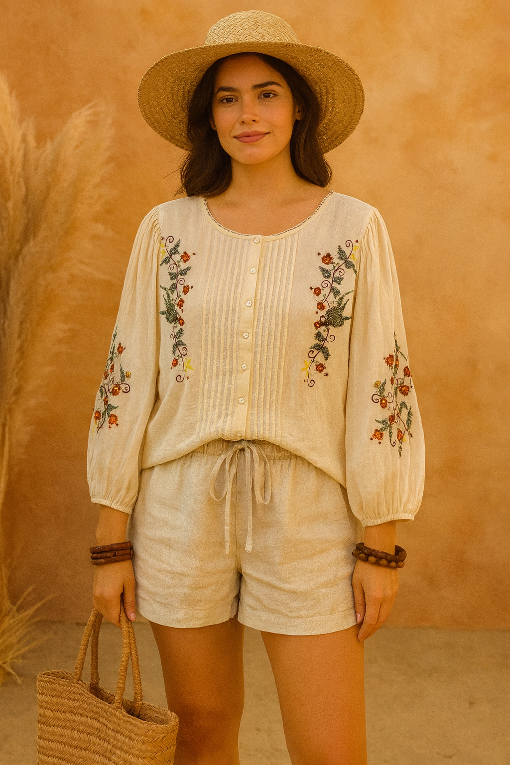 ✔️ Combine com short de linho, bermuda jeans ou calça reta para um estilo boho chic moderno